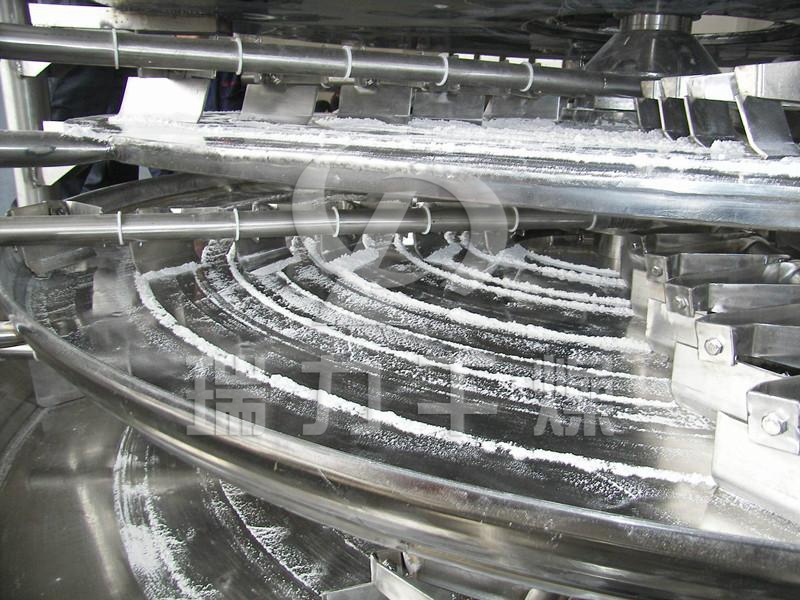 二、頭孢曲松鈉專用盤式干燥機概述:頭孢曲松鈉專用盤式干燥機是一種高效的傳導(dǎo)型連續(xù)干燥設(shè)備。其獨特的結(jié)構(gòu)和工作原理決定了它具有熱效率高、能耗低,占地面積小、配置簡單、操作控制方便、操作環(huán)境好等特點,廣泛適用于化工、醫(yī)藥、農(nóng)藥、食品、飼料、農(nóng)副產(chǎn)品加工等行業(yè)的干燥作業(yè)。在各行業(yè)使用實踐中深受好評。現(xiàn)生產(chǎn)制造常壓、密閉、真空三大類型、1200、1500、2200、3000四種,A(碳鋼)、B(接觸物料部分均布不銹鋼)、C(在B的基礎(chǔ)上,增加蒸汽管路、主軸及支架為不銹鋼,筒體和蓋頂內(nèi)襯不銹鋼)。三種材質(zhì),干燥面積4~180m 2,共幾百種型號的系列產(chǎn)品,并能提供與之相配套的種輔助設(shè)備,可滿足用戶對各種物料進行干燥的需要。